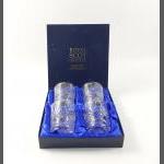 A box set of 4 ROYAL SCOT HAND CUT LEAD CRYSTAL whisky tumblers unused - still in their original presentation box! dimensions of each glass 9cm height x 8cm diameter