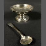 A small silver plate dish on a pedestal (7cm dia and 4cm high) and spoon by GUSTAV ERIKSSON of Sweden
