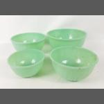 A set of four vintage FIRE KING WARE jadeite green mixing bowls with a swirl pattern 15, 18, 20 and 23cm diameter