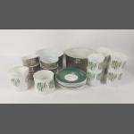 Four boxes of unused THOS E OSBORNE stainless steel knives, a box with 4 steak knives, 2 boxes of CLOVERLEAF serving mats and 1 box of 8-sided place mats all in moss green with gold trim plus some EPNS cutlery