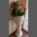 An over- sized TWO PIECE JARDINIERE with life-like colourful faux HYDRANGEA plant - height with pot 90cm x diameter 28cm approx