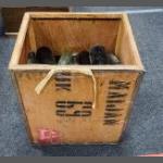 An OLD WOODEN TEACHEST FILLED with brown bottles ( suitable for Homebrewing?)