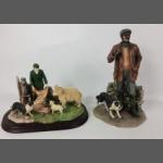 From the LEONARDO COLLECTION 2 large country scenes, the first of the farmer putting out food for his sheep (30cmLx20cmDx20cmH approx) and 'The Shepherd' from 2004 stands 33cm high approx (tiny chip from one finger)