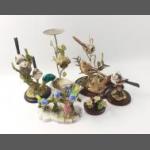A study in birds to include BORDER FINE ARTS (A26085) Long-Tailed Tit, COUNTRY ARTISTS (04905) 'Summer Rendezvous' (some damage to foliage), BRITISH BIRDS COLLECTION 'Wren', a TEVIOTDALE arrangement from 1995, ADDERSLEY grouping of Blue Tits, a duck and a candle holder embellished with a bird