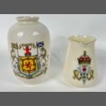 A Royal Arms of Scotland GOSS WARE vase and GOSS WARE jubilee jug dated 1887