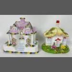 Two Porcelain cottages, 1 '' THE COUNTRY COTTAGE ' by COALPORT [11cm by 12cm] and 2 Hand modelled cottage by DENTON.[10cm by 10cm]
