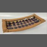 A shallow glazed pottery dish, signed IAIN NELSON to base and dated 2002, 42x20cm