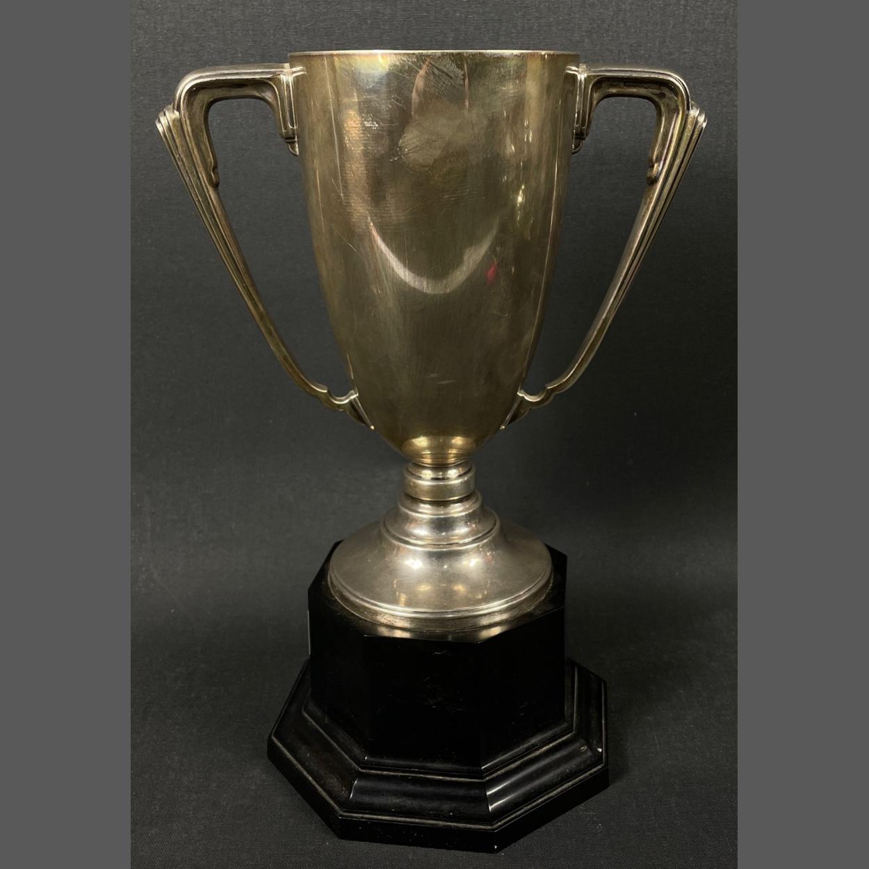 A silver hallmarked cup (no inscription so suitable for all), Sheffield 1963, with base stands 30cm tall gross weight 647g