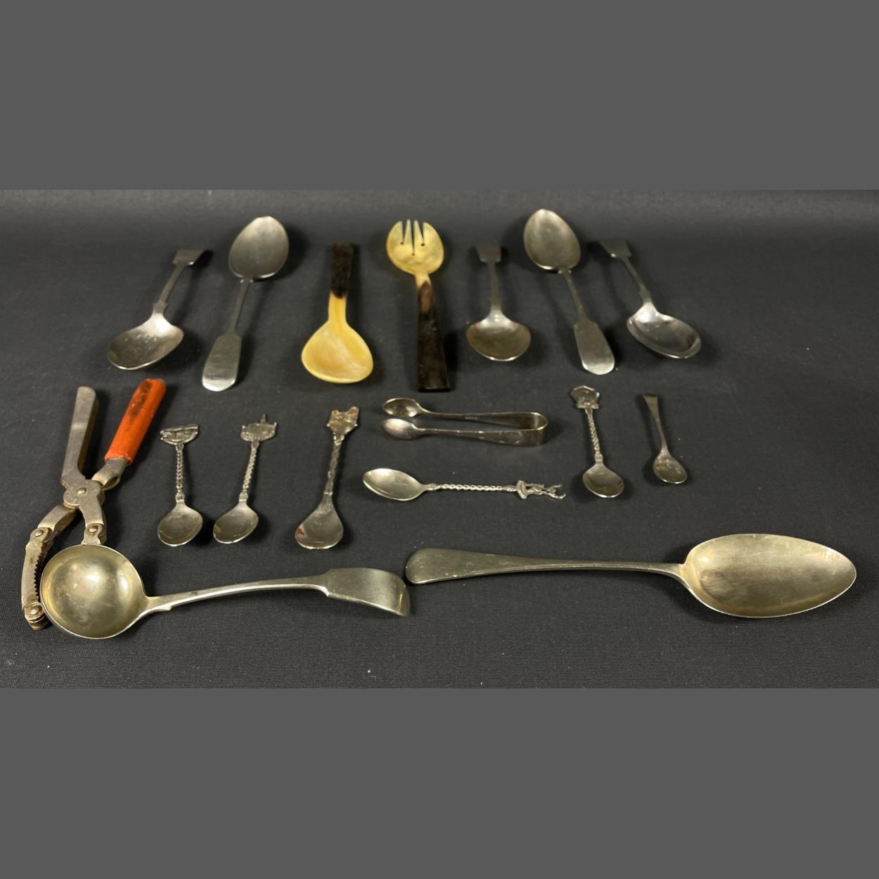 A quantity of cutlery to include Nevada Silver, EPNS sugar tongs, nut brown nutcrackers, and a pair of salad servers