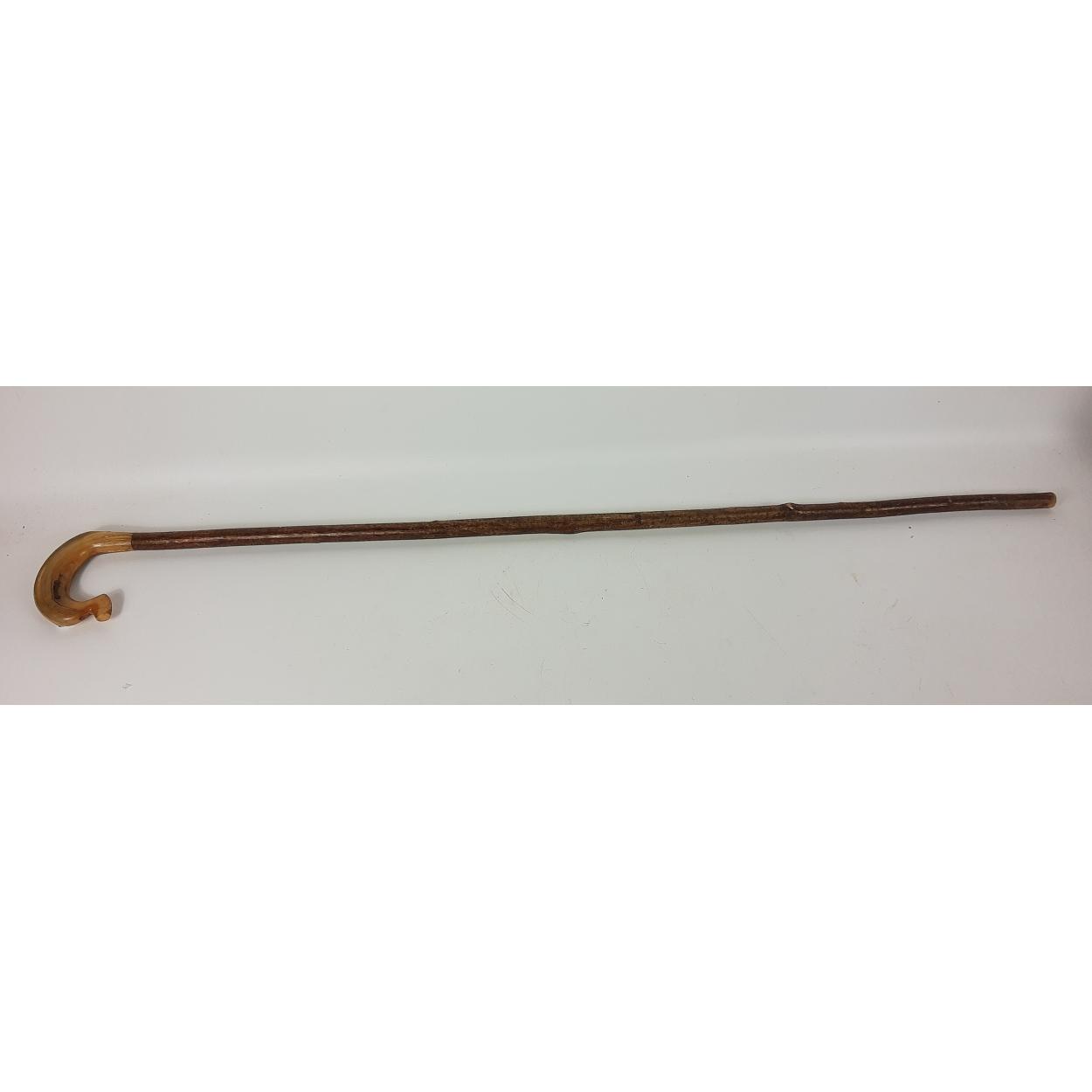 A wooden walking stick with a horn handle 107cm long
