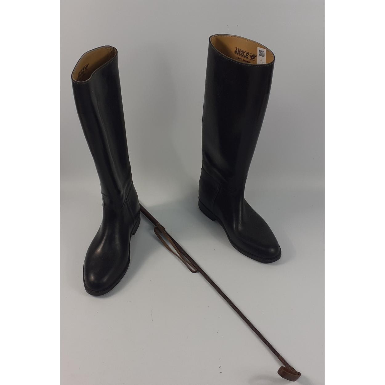 A pair of French AIGLE riding Boots size M (6 1/2 Eur 40), some wear but plenty of life left plus a brown leather riding crop
