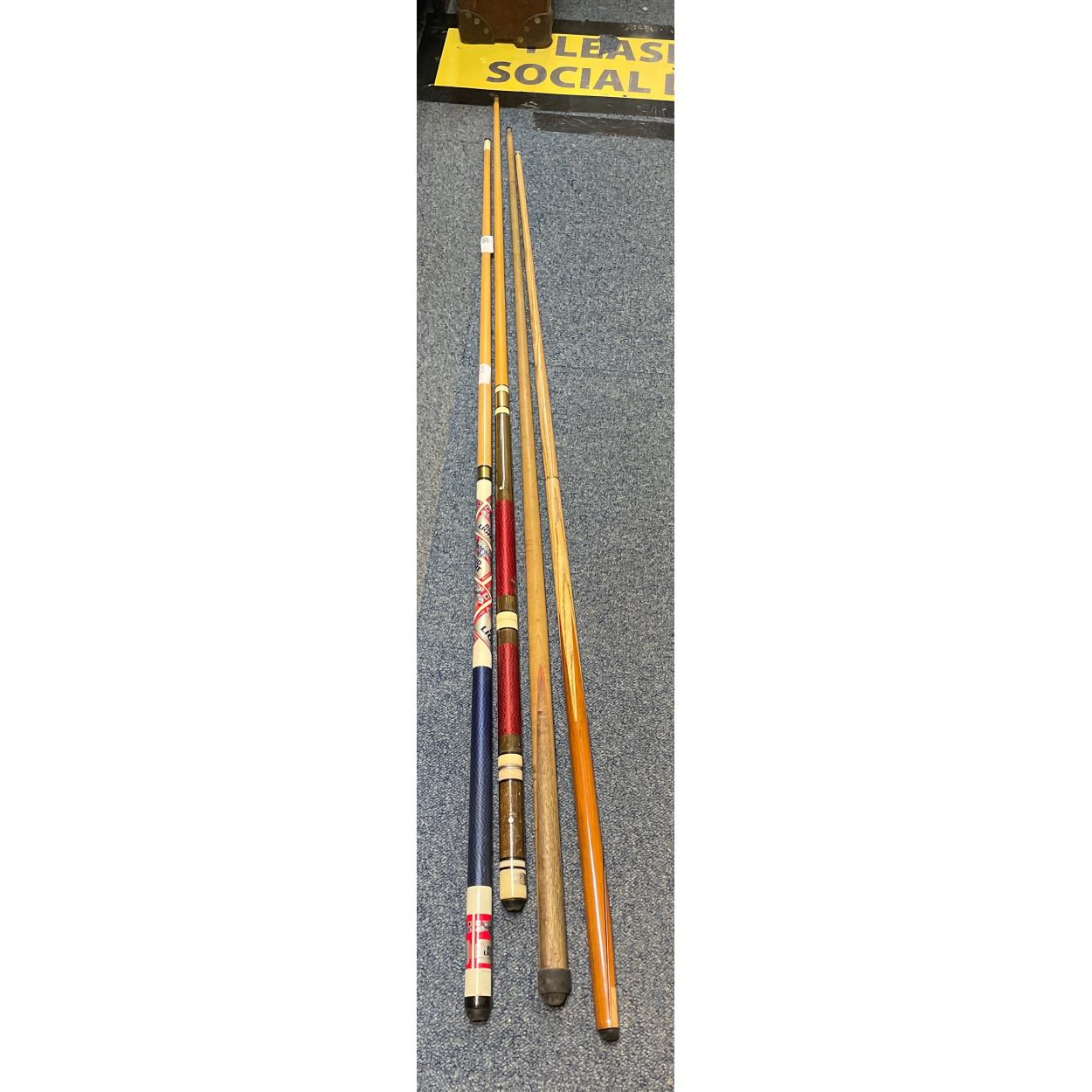 Four nice condition snooker cues including one BUD LIGHT