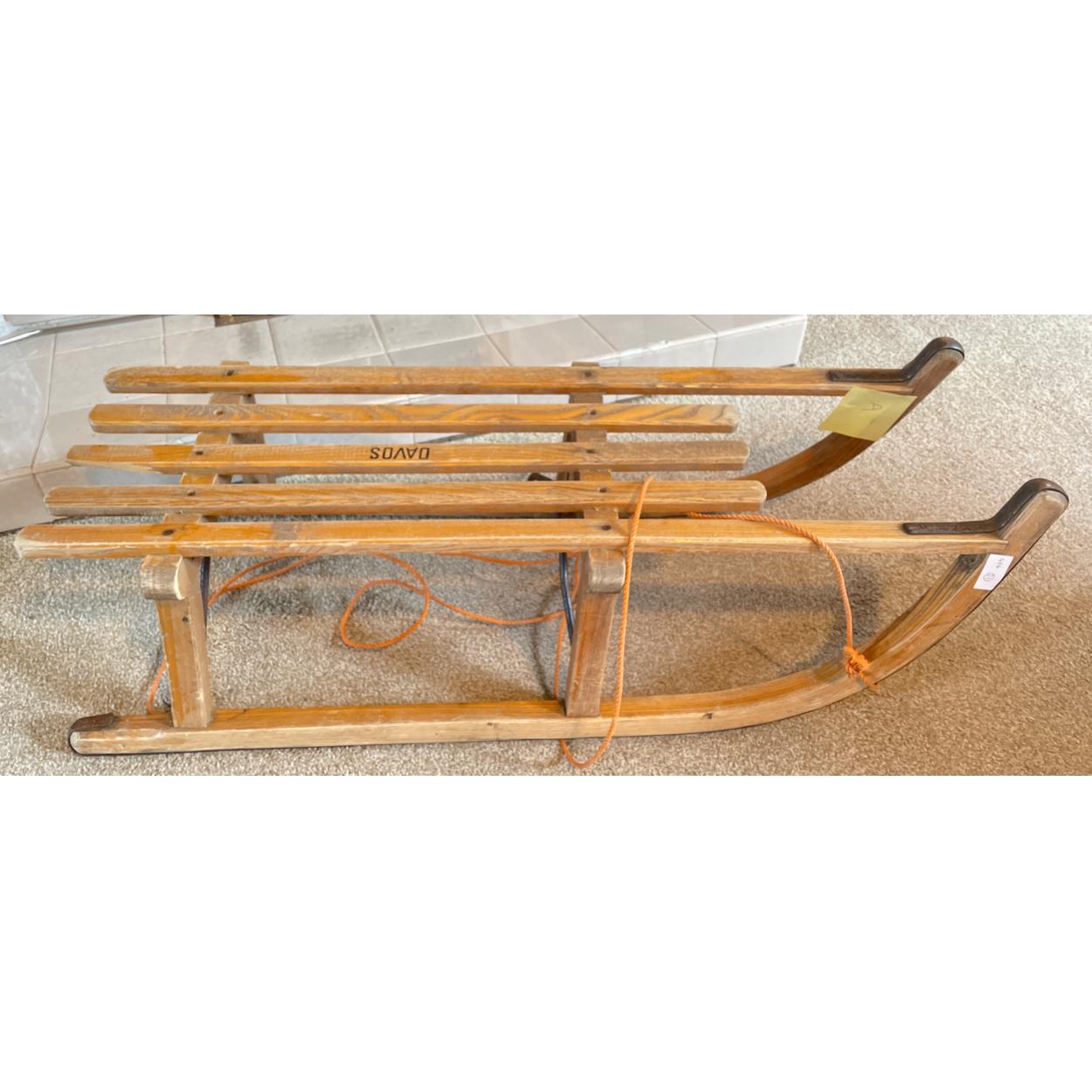 A nice old wooden sledge with metal strengthened runners - 90cm length x 35cm width approx