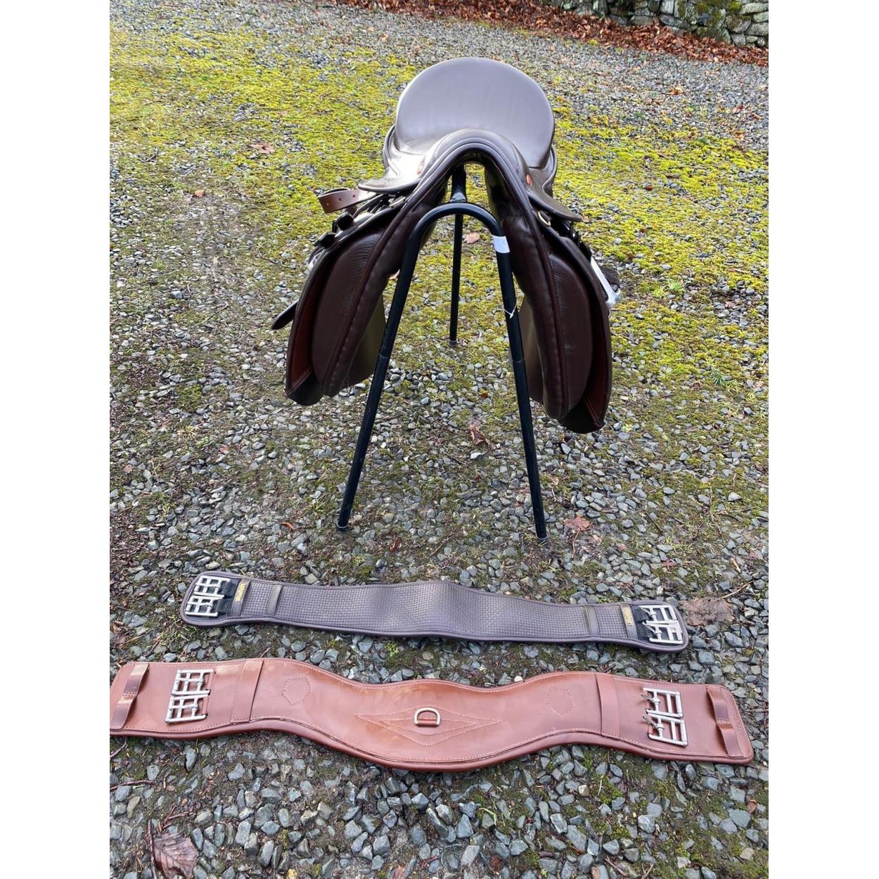 WOW - This Saddle came from a devoted 'through and through' horse lover - saddle (and all equestrian equipment) so beautifully loved & maintained EQUESTRIAN INTEREST - A 17" (5.5/6" at the pommel) KES handmade brown leather (oiled and maintained) DRESSAGE saddle (cost new £800) complete with stirrups and leathers, - with 2 girths, one by WINTEC, the other SUPER FABULOUS QUALITY PRESTIGE brand (this one cost over £200 new!) - all comes with a nice saddle stand - TREMENDOUS VALUE