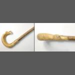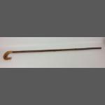 A wooden walking stick with a horn handle 107cm long