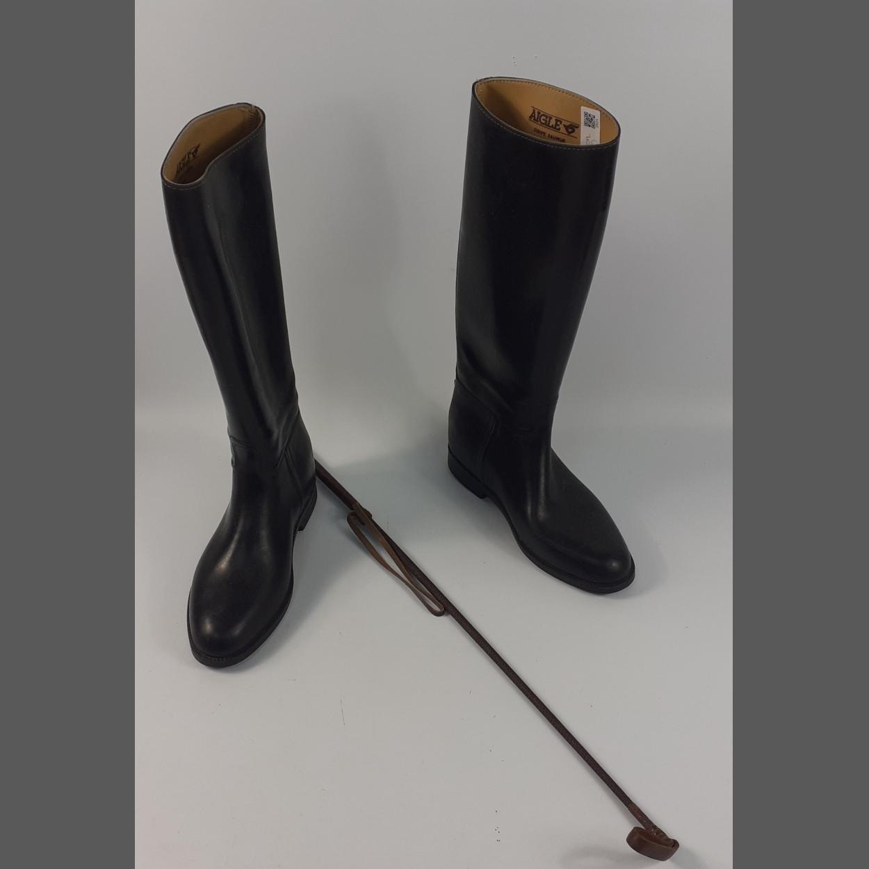 A pair of French AIGLE riding Boots size M (6 1/2 Eur 40), some wear but plenty of life left plus a brown leather riding crop