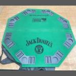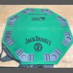 A portable THE NUTS Poker league fold-away table top board featuring a JACK DANIELS logo with another dimension 4ft diameter when folded-out - with carry bag