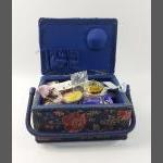 HABERDASHERY HEAVEN!! - A nice wee padded and floral patterned sewing box with handle FILLED with sewing items like reels of thread, scissors, measuring tape and SO MUCH MORE! - dimensions of basket 25cm length x 12cm height x 17cm depth