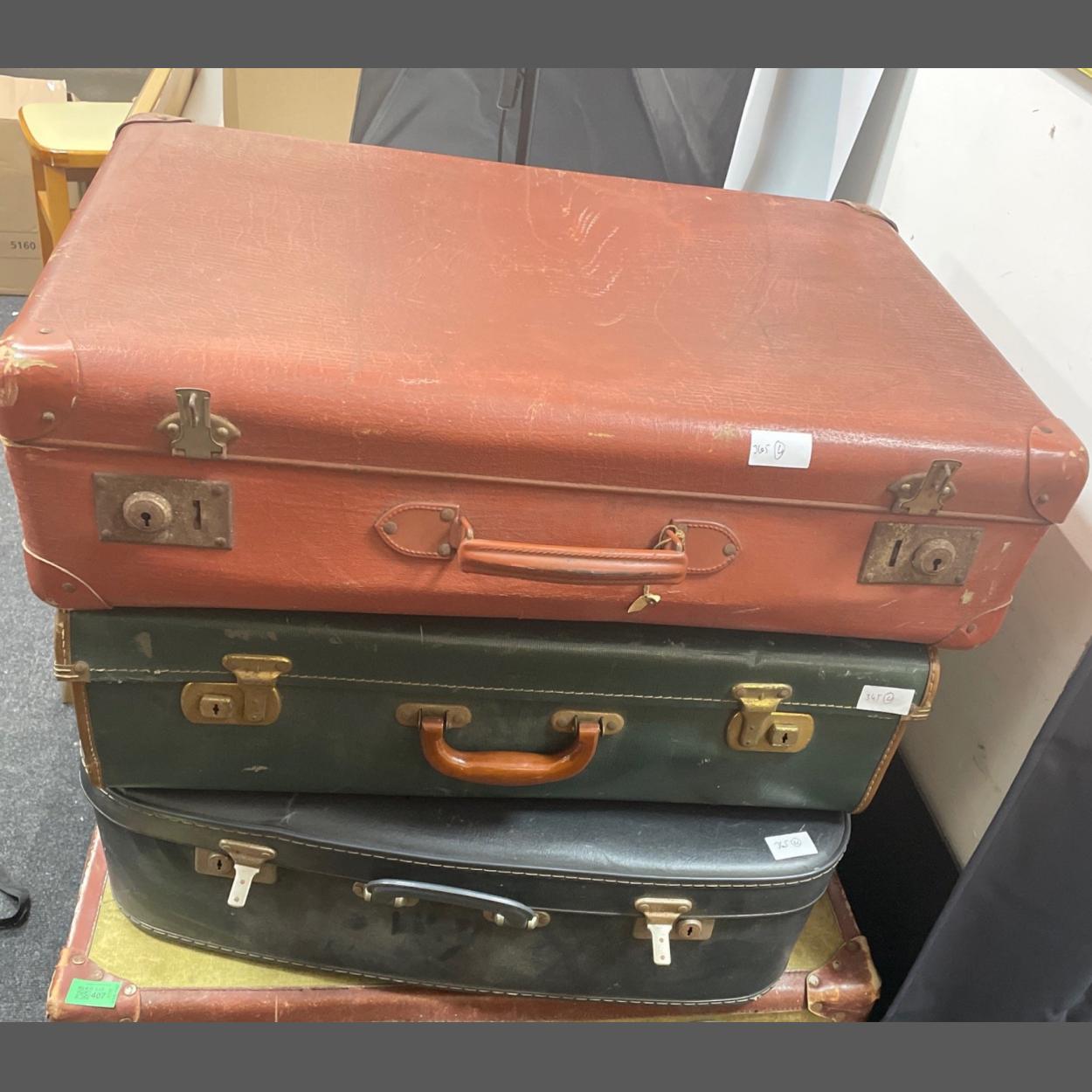Three VINTAGE suitcases - dimensions of the largest case 66cm x 44cm approx