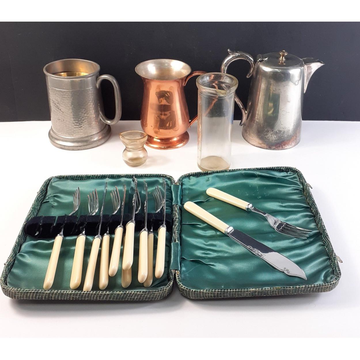 A small mixed lots of interesting items to include LNER whistle, WWI trench lighter, silver napkin ring, Dundee pewter pin dish and others.
