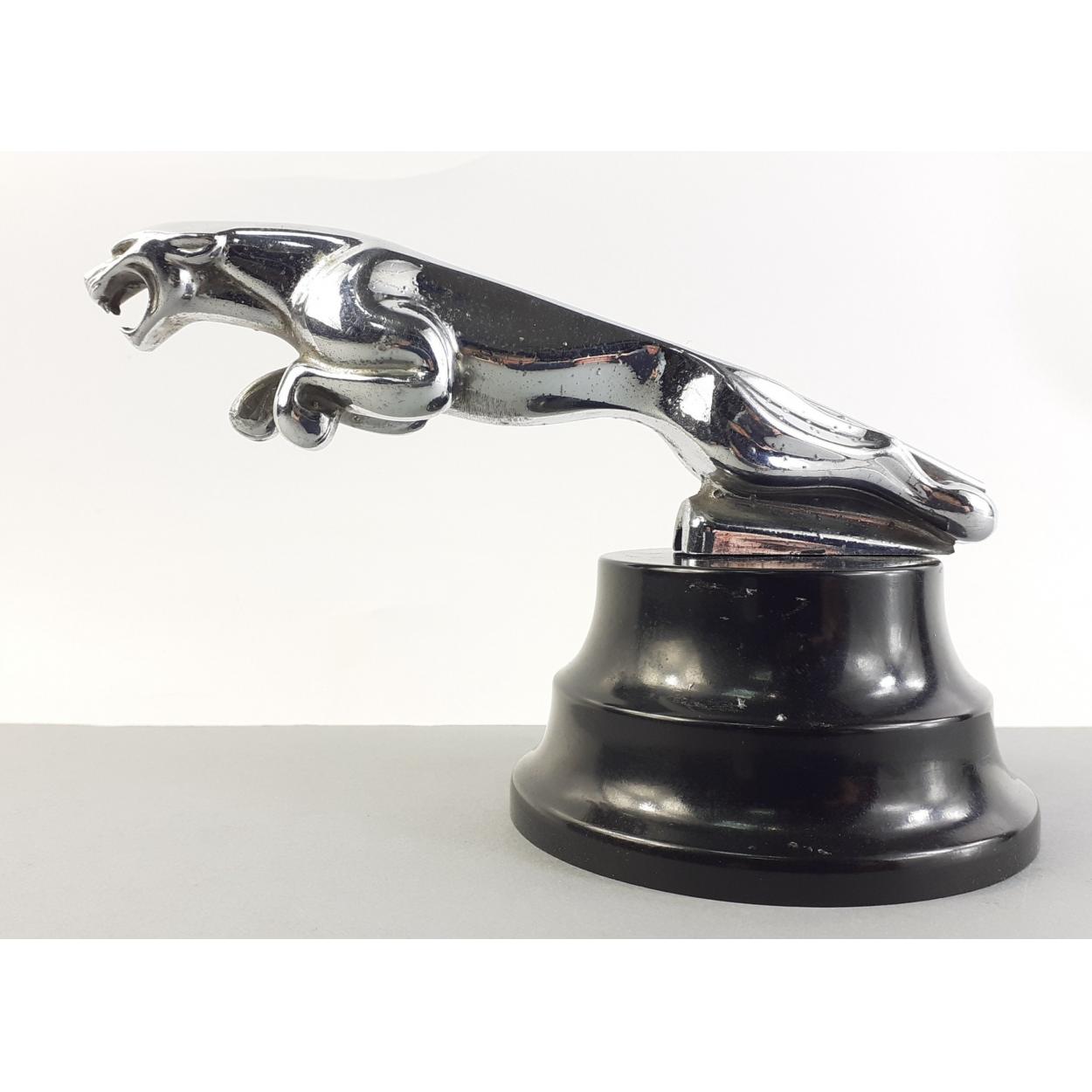 A chrome plated JAGUAR car hood ornament mascot. 17cm long approx mounted on plastic plinth.