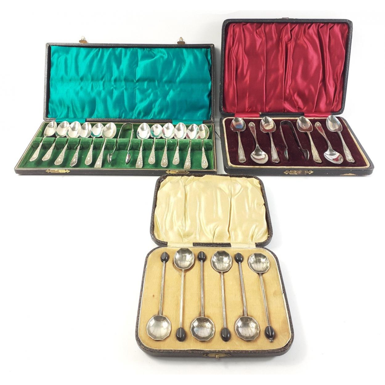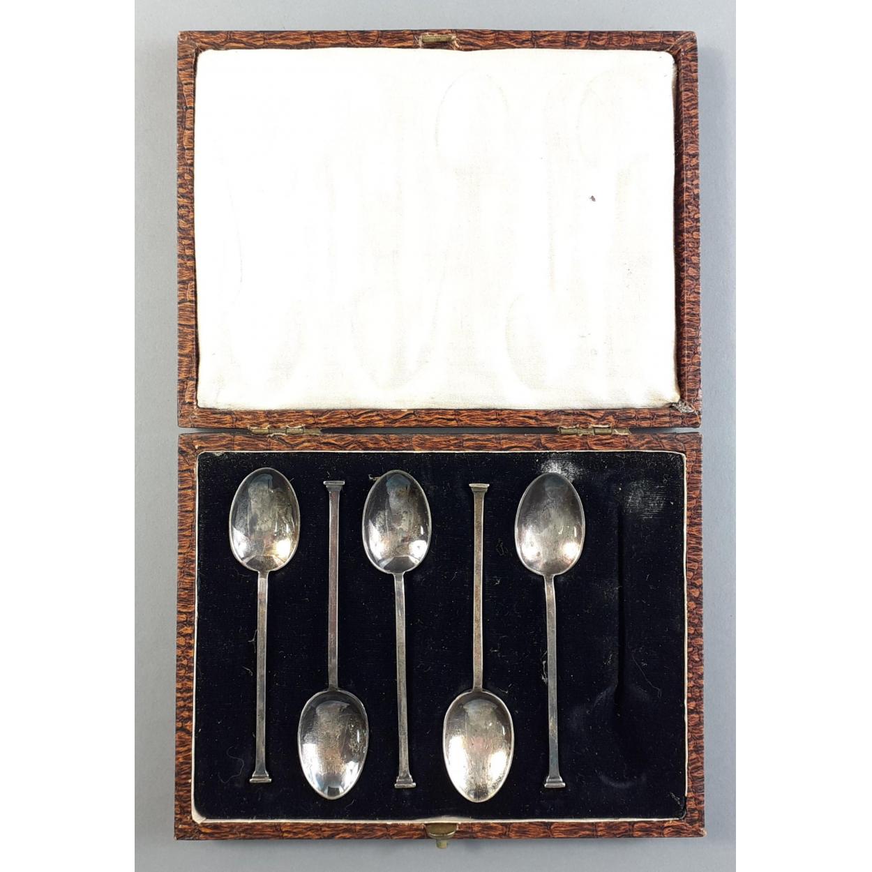 An exquisite boxed set of twelve sterling silver coffee spoons each 9cm approx. Sheffield 1937, silversmiths Charles Allen. Total weight 85g approx.