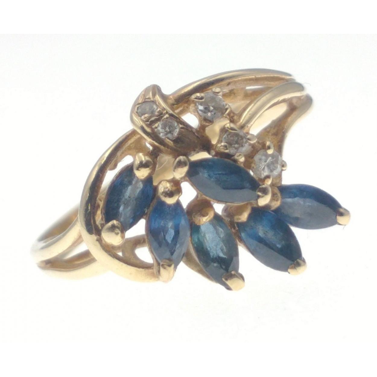 A pretty 585 stamped 14k ring with small sapphires and diamonds in an attractive floral layout. Gross weight 3.2g approx. Size M