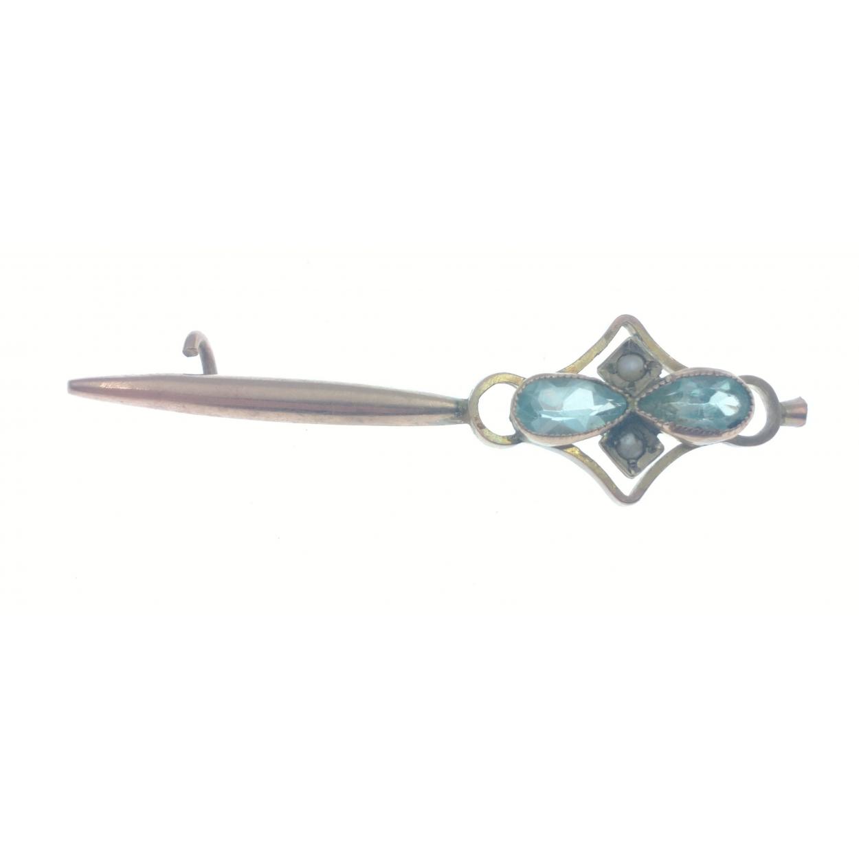 A 9ct gold pin brooch (pin missing) with two small turquoise stones and two seed pearls. 4cm approx. Gross weight 1.4g approx