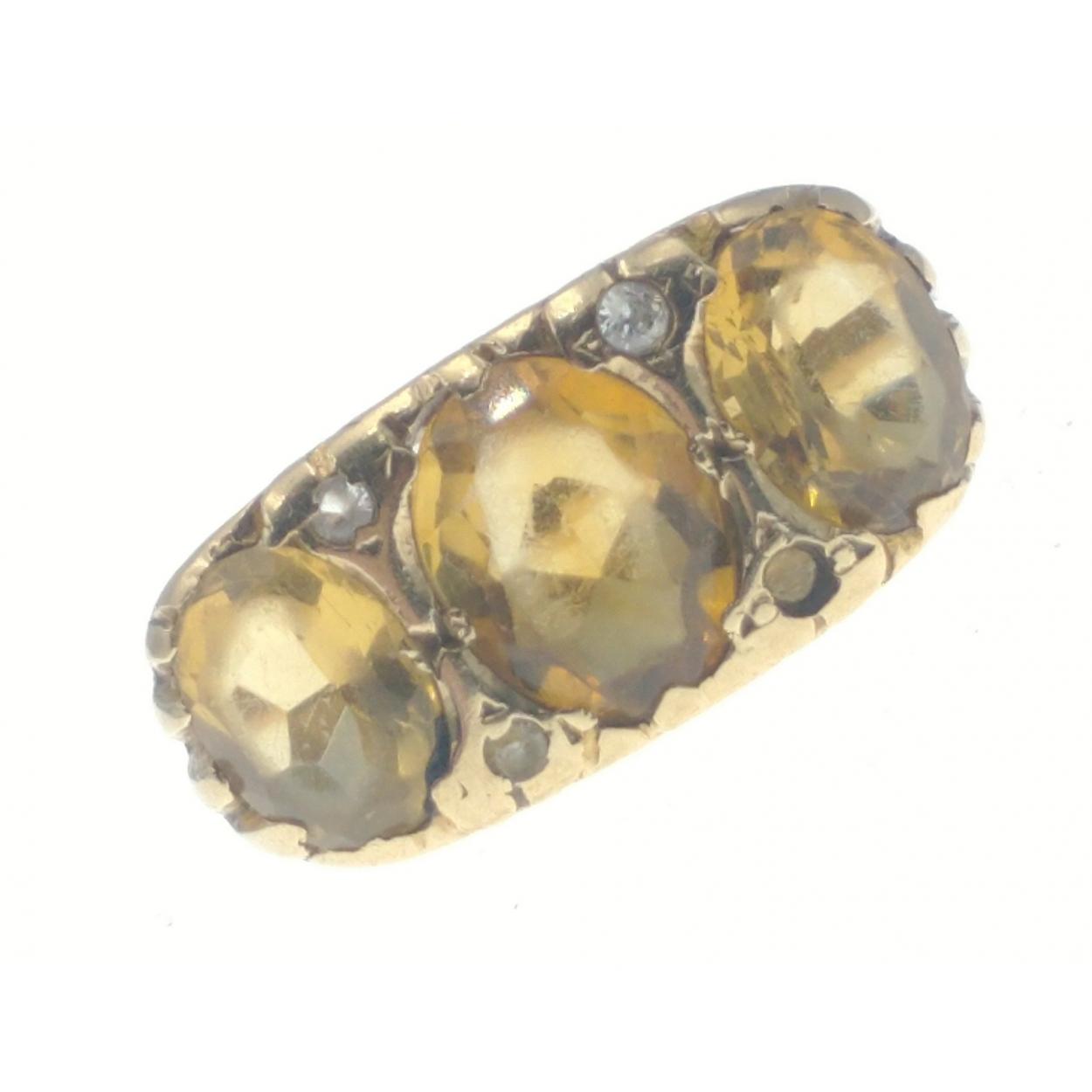 A P&G stamped yellow metal ring with rubbed indistinct marks. Three large amber stones to centre. Size M, gross weight 5.4g approx.