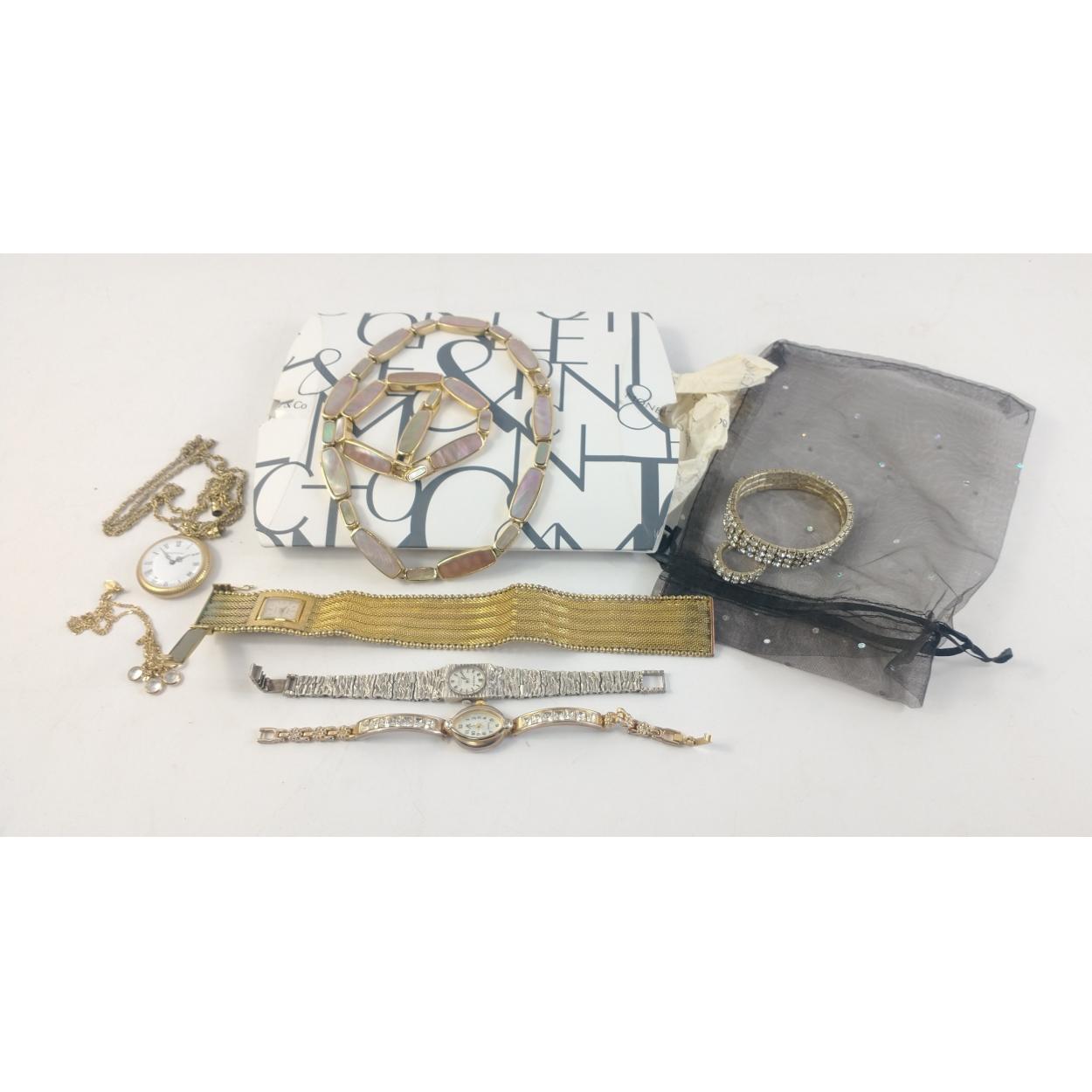 A collection of silvered gilt jewellery. Bracelets, necklaces with pendants etc. A good looking lot.
