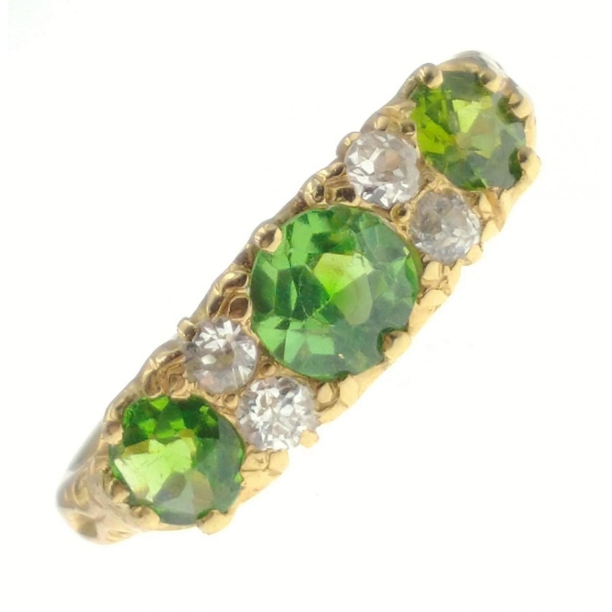 An 18ct 1914 engraved diamond (tested) and emerald and with one peridot replacement stone - gross weight 4.11g approx