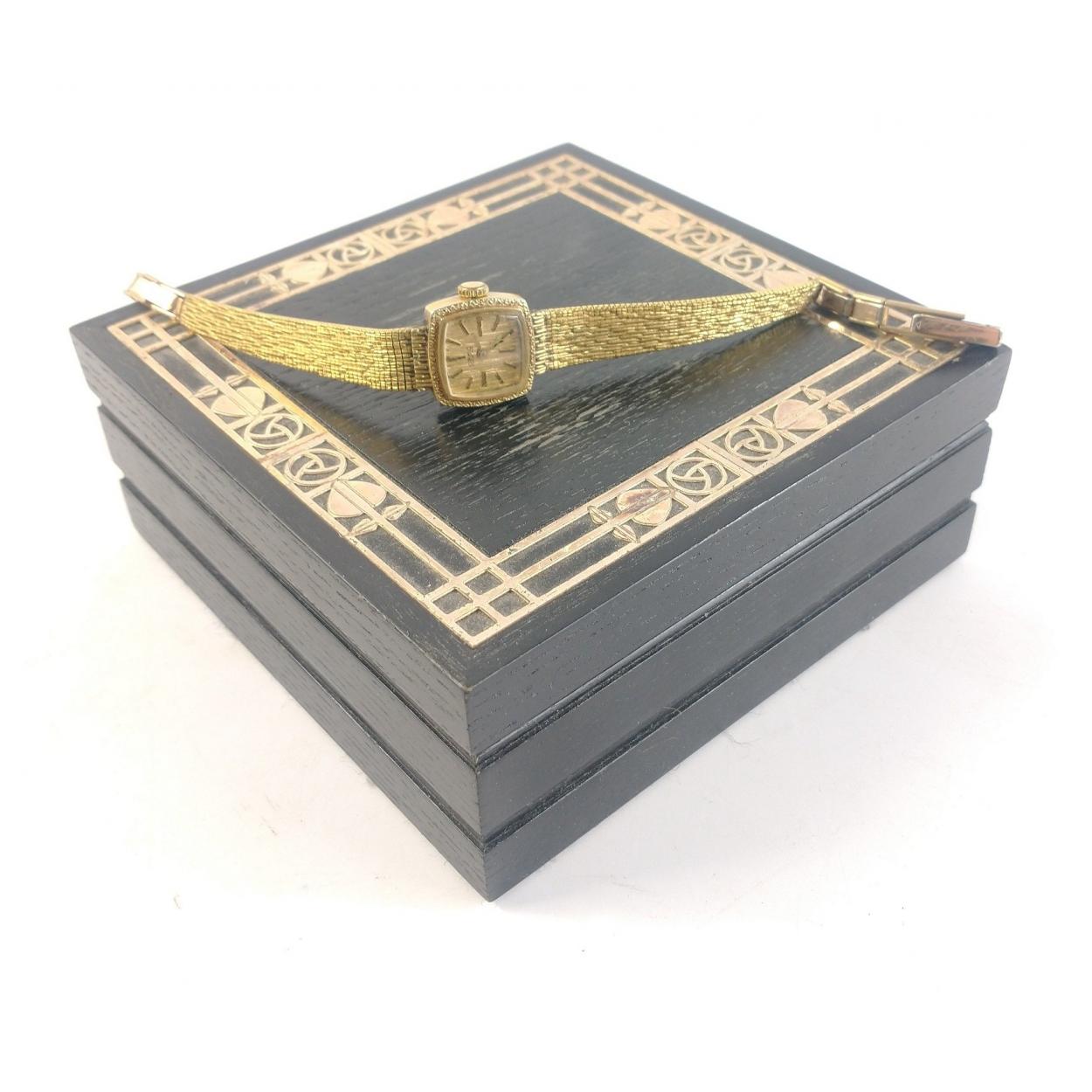 A small wooden CARRICK box (11.5 x11.5cm approx) with metal inlaid RENNIE MACKINTOSH style pattern with a ladies ORMO cocktail watch