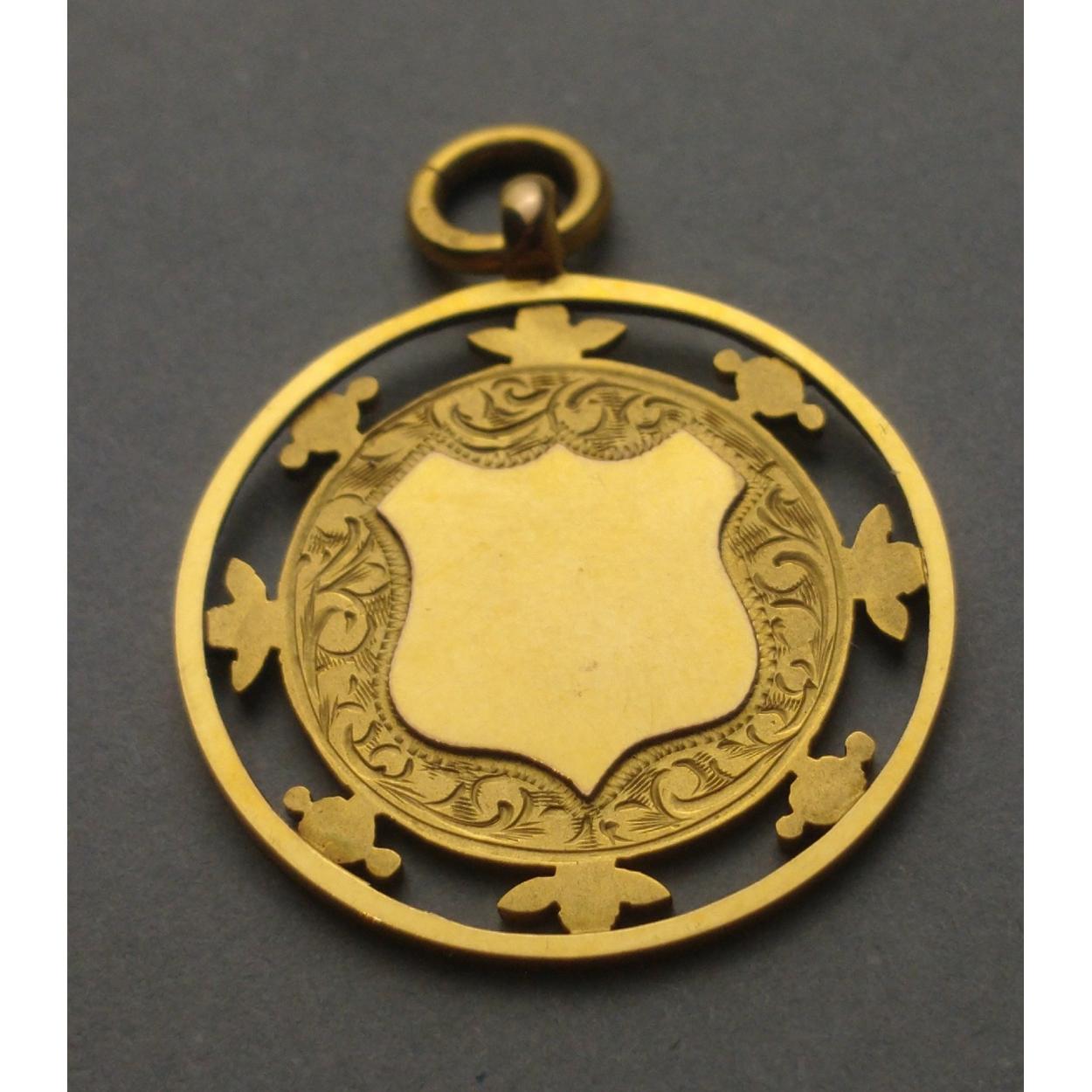 A gold medallion stamped 9 and .375 and hallmarked Birmingham, with blank cartouche. 30mm approx, weight 5.15g approx