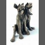 A FRITH pair of bronze effect resin dogs - TOM and FRED by Harriet Dunn, standing approx 17cm high.