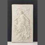 A plaster plaque of a classical lady gone fishin' , slight damage to mouth, measures 39 x 28cm approx