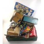 Small lot of automotive interest to include head lamps, wing mirrors, boxed wipers, grease gun, foot pump, cables and others.