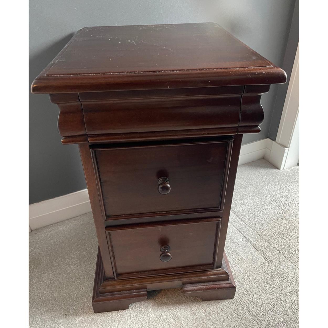 A quality rosewood effect bedside cabinet with a discreet drawer and 2 further drawers W40 x D45cm approx