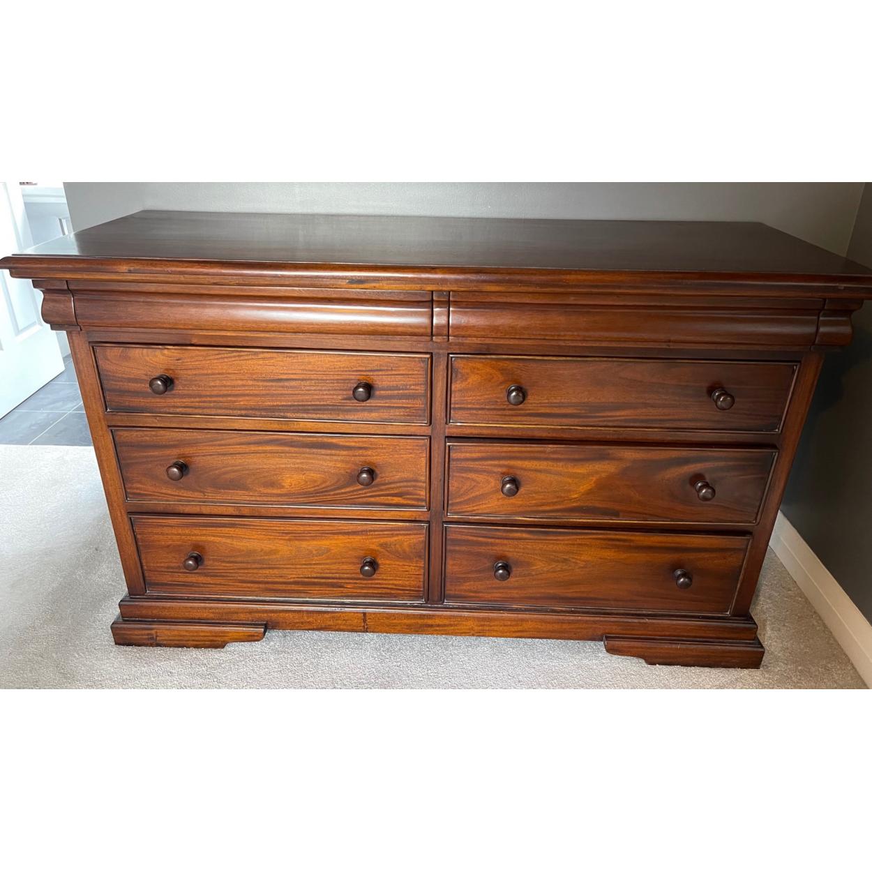 A SUBSTANTIAL quality rosewood effect 6 drawer chest of drawers with 2 secret drawers W153 x D55cm approx