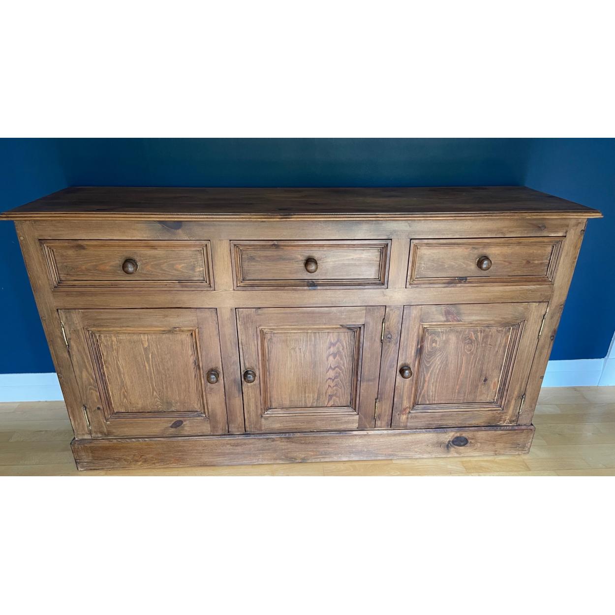 An antique pine sideboard 3 drawers over 3 cupboards W150 x D46cm approx