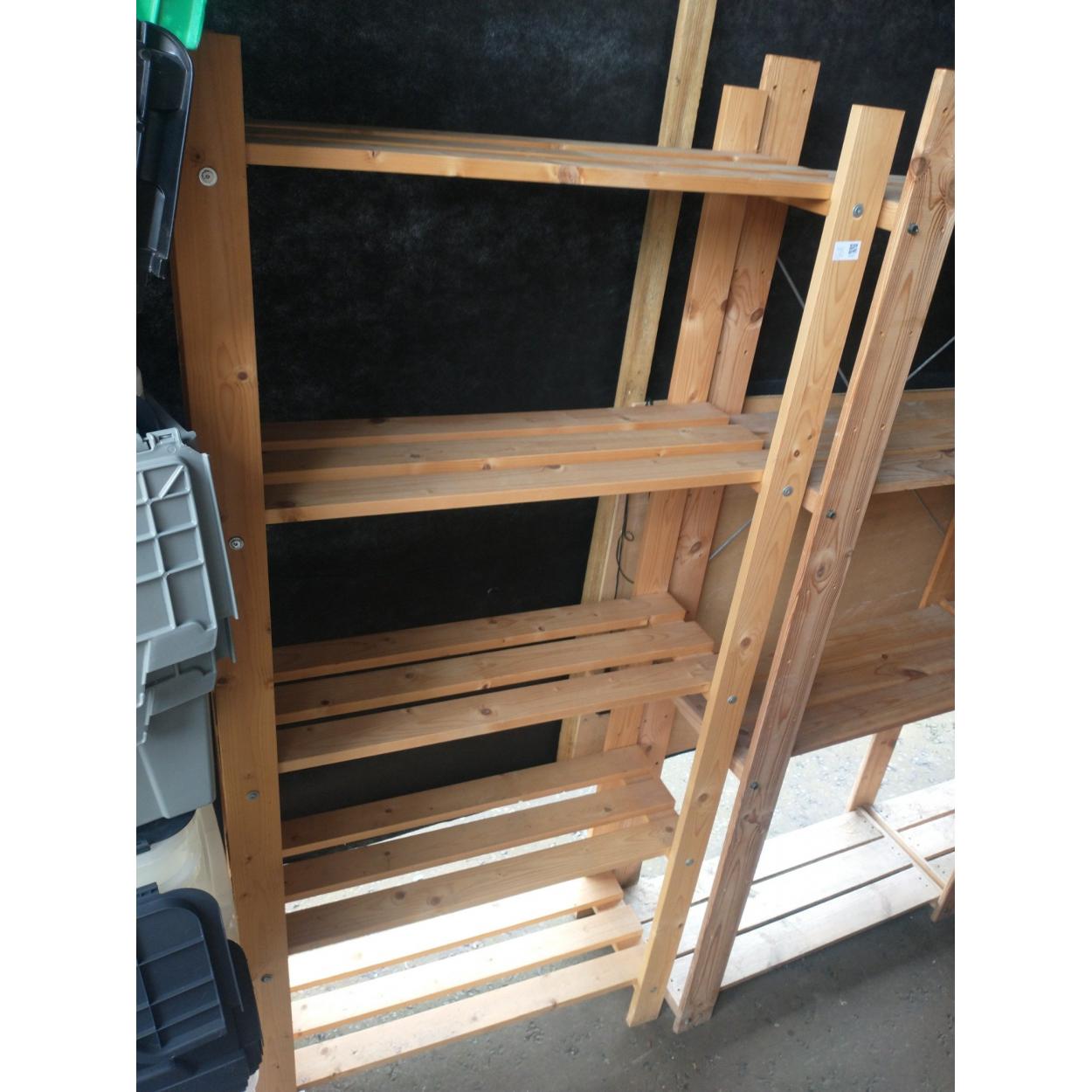 A five shelf wooden storage racking solution. Stands 183cm tall approx, x 78cm wide