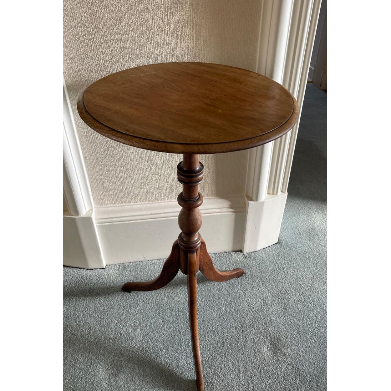 Circular topped three-legged side table. 74cm tall approx
