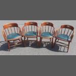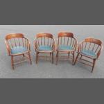 A set of four late 19th century honey oak captain's dining chairs with green leather seat pads in lovely condition