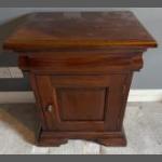 A heavy good quality rosewood effect bedside cabinet with a slide out drawer and cupboard below. W54cm x D45cm approx