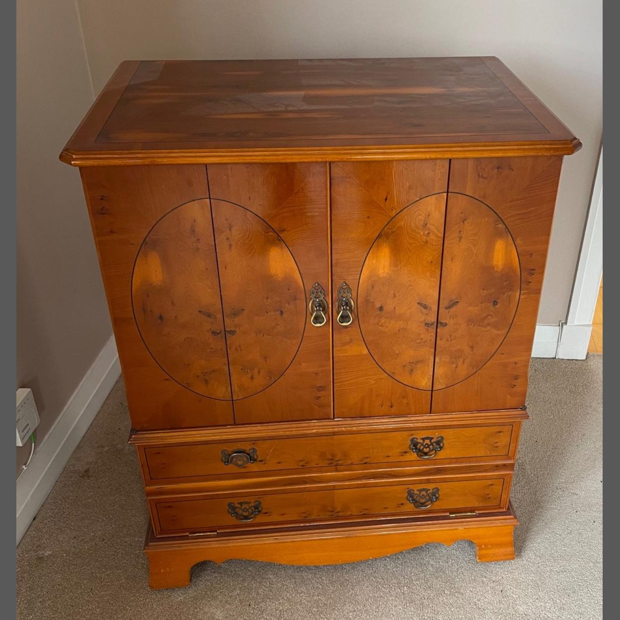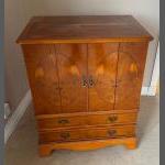 A yew wood veneer media cabinet with 2 drawers W70cm x D45cm approx