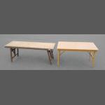 Two useful folding tables both rectangular ideal for boot sales etc. Largest 185 wide x 61cm deep. The small 138cm wide x 72cm deep.