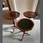 Four pie crusted wine/occasional tables, one with green leather top. Tallest 56cm approx