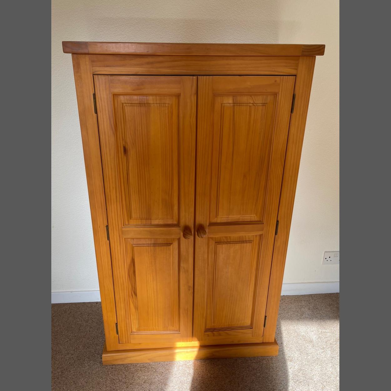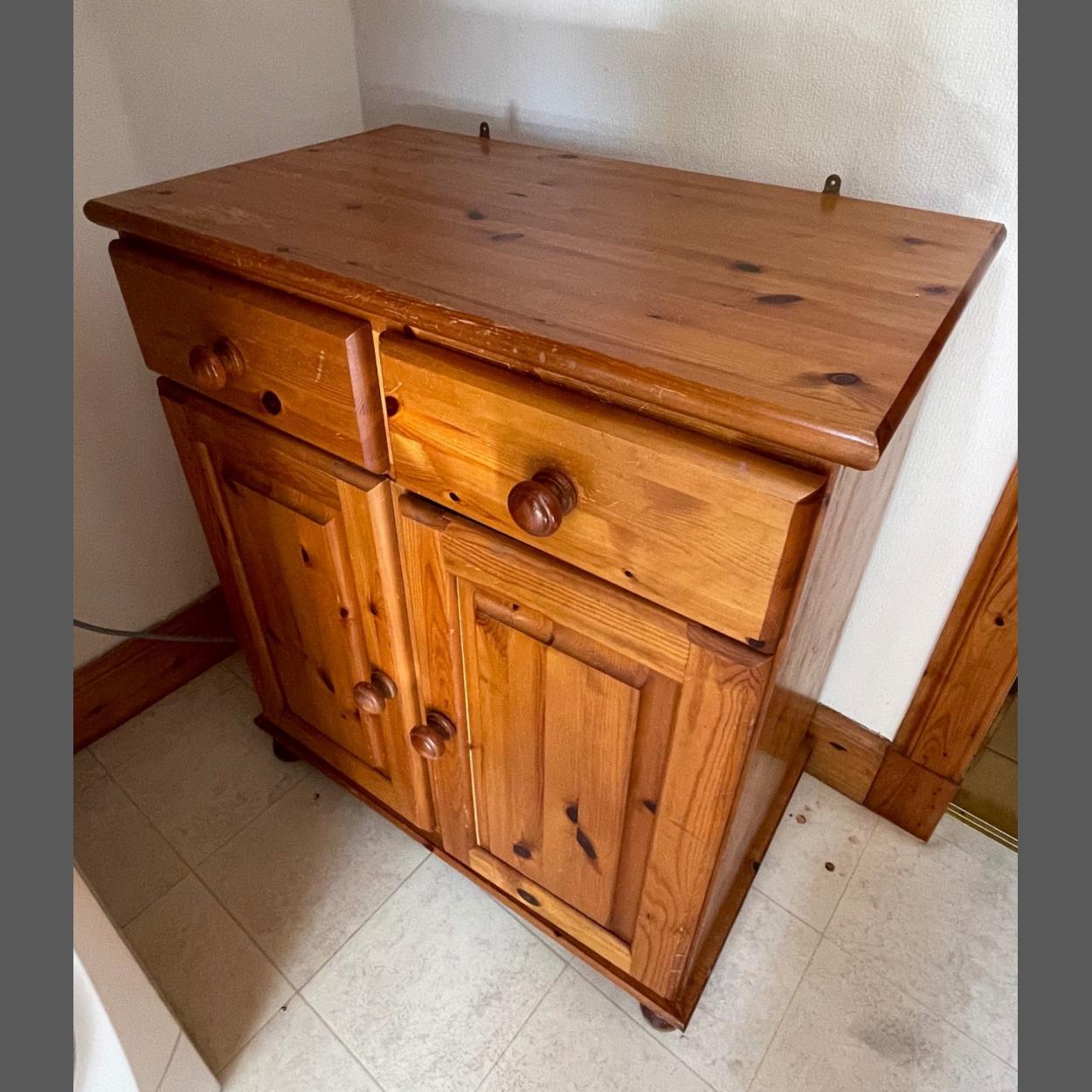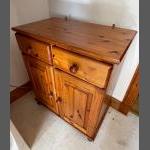 An ANTIQUE PINE EFFECT two drawer over two cupboard floor standing cabinet - 3ft wide x 18" depth x 3.5ft height approx