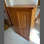 A sturdy light oak style 3 shelf floor standing cupboard -5ft tall x 2.5ft width approx