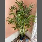 C1960s peacock effect fan tailed back bamboo armchair in good condition.
