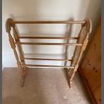 A nice distressed pine floor standing towel rail - dimensions 3ft tall x 2.5ft wide approx